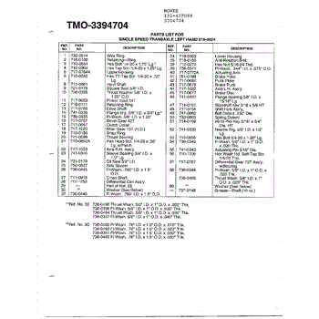 Parts for Mtd 3394704: Single Speed Transaxle-L Page 2 Parts