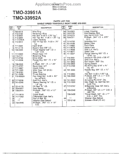 Parts for Mtd 33952A: Single Speed Transaxle Rh Page 2 Parts