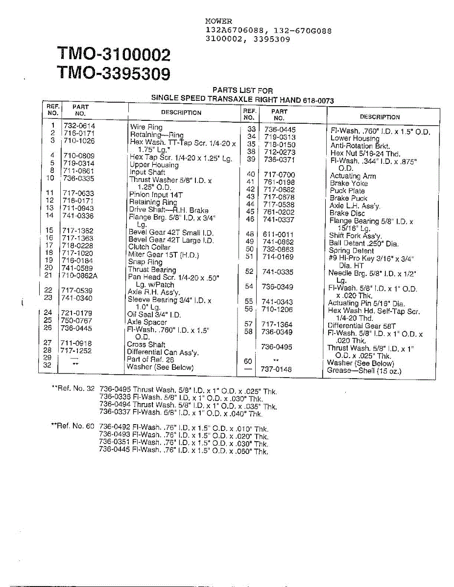 Parts for Mtd 3395309: Single Speed Transaxle-R Page 2 Parts