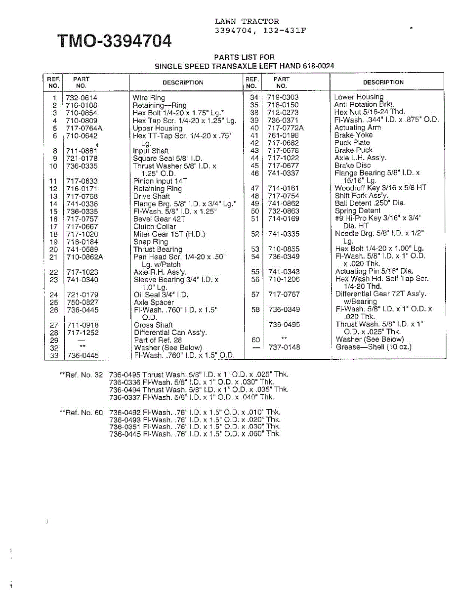 Parts for Mtd 3394704: Single Speed Transaxle Left Hand Page 2 Parts