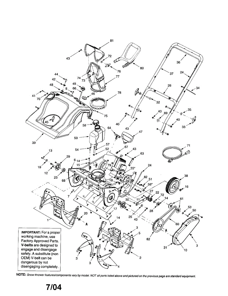 The drive V-belt, manufactured by Craftsman, is used in one- and two-stage snow blowers as well as tillers. This is a drive belt that connects the engine to the auger of the tiller or snowblower via a pulley at either end. This turns the blades of the tiller or the auger blades of the blower to expel snow. As a flexible, hardened rubber part connecting other moving parts, a V-belt is considered “replaceable,” meaning that users should expect to have to replace this part during normal use of the equipment. Signs that a drive V-belt may be going bad are a squealing sound when the blower's auger or the tiller's blades are first engaged, or if the auger is slow to engage and loses power during use. To replace the V-belt, the equipment must be secured and the spark plug caps removed. Tilt the device to reveal the location of the belt. It must detached from the engine pulley and the transmission pulley. When replacing the V-belt, before tightening the pulley, make sure all moving parts are properly aligned. This genuine OEM part is compatible with machines sold by MTD, Yard Man, Craftsman, and Yard Machine.