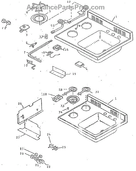 Parts for Kenmore 612.8993040 (6128993040, 612 8993040): Sink And Burner Parts