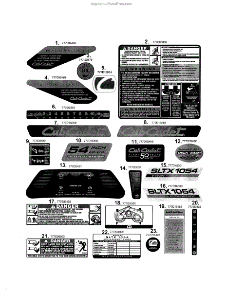 Parts for Cub Cadet 13WZ92AK056: Sltx 1054 Decals Parts