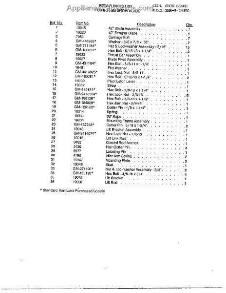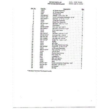 Parts for Haban 33878: 42" Snow Blade Page 2 Parts