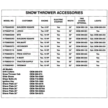 Parts for Yard Machines 317E660G372 / 1997: Snow Thrower Accessories - Part 2 Parts