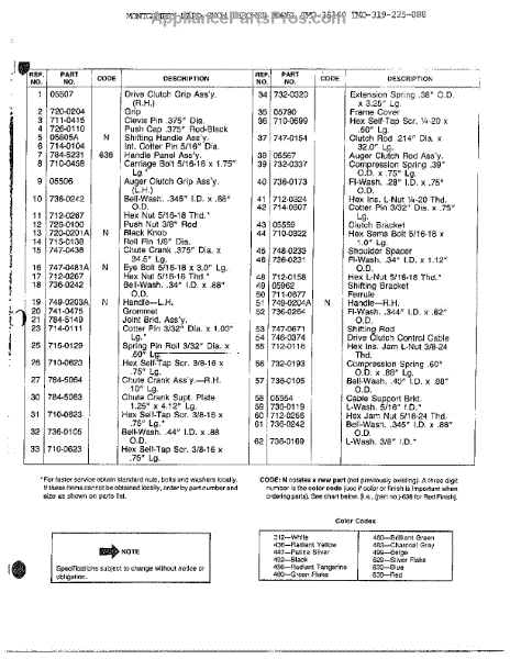 Parts for Mtd 319-255-088: Snow Thrower Page 2 Parts