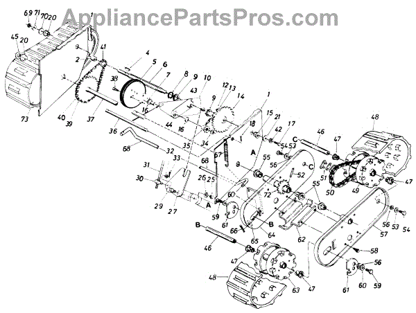 This snow thrower track is a genuine OEM part sourced directly from the manufacturer for use on snow throwers that are track-driven. Tracks used on snowthrowers provide more traction than wheels and are better for steep inclines. These tracks roll over a shaft and propel the machine forward, like an army tank. Over time and with heavy use, the tracks may become damaged and need to be replaced. If one track is damaged, inspect both before ordering. These are sold individually, and it is best to have both on hand when doing repairs.Before replacing the track bracket, remove the spark plug and empty the gas from the snowblower. Wear safety gloves and safety glasses. Jack the snow thrower up on the side that is being repaired. Remove the nuts holding the track on the shafts to loosen it. Remove the track and put the new one. Ensure the track is on straight and tight. Tighten the nuts. Reinstall the fuel and spark plug.This snow thrower track is a black rubber part that is sold individually. It is designed for use in snow throwers manufactured by Craftsman and MTD.