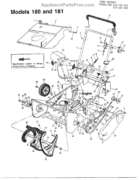 Parts for Mtd 310-180-000: Snow Throwers Parts