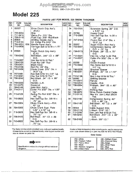 Parts for Mtd 318-225-000: Snowthrower Page 2 Parts