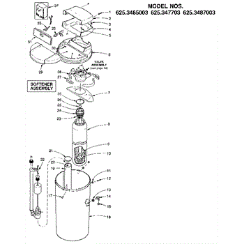 Parts for Kenmore 625.3485003 (6253485003, 625 3485003): Softener Assembly Parts