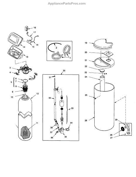 Parts for Waterworks WS1000: Softener Assembly Parts