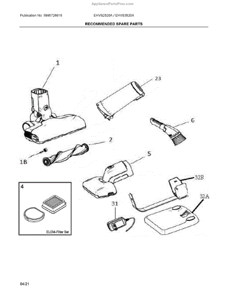 Parts for Electrolux EHVS2520AW: Spare Parts
