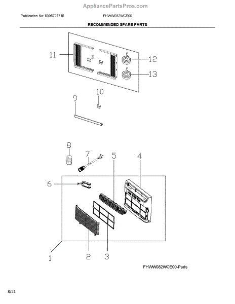 Replacement drawer slide rail for room air conditioners. Guides and supports the drawer for smooth operation. Replace if cracked, bent, or broken.