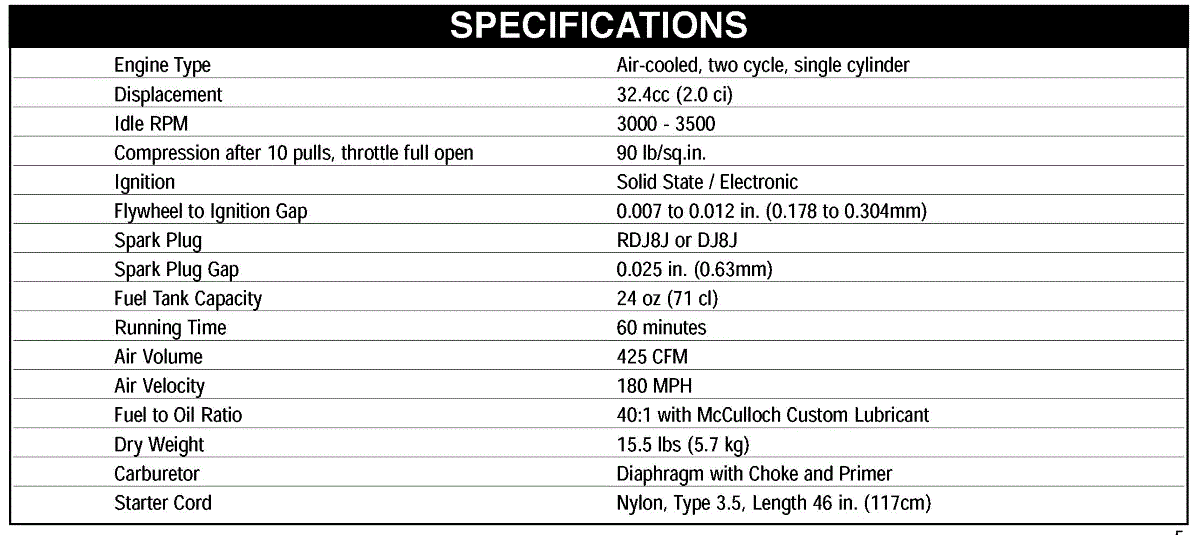 Parts for Mcculloch 41AR320G077: Specifications Parts