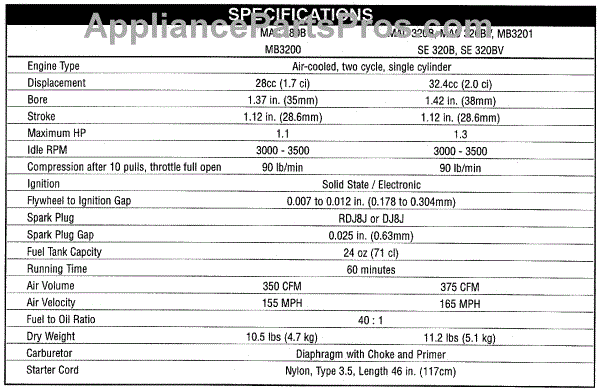 Parts for Mcculloch 41BR322G077: Specifications Parts