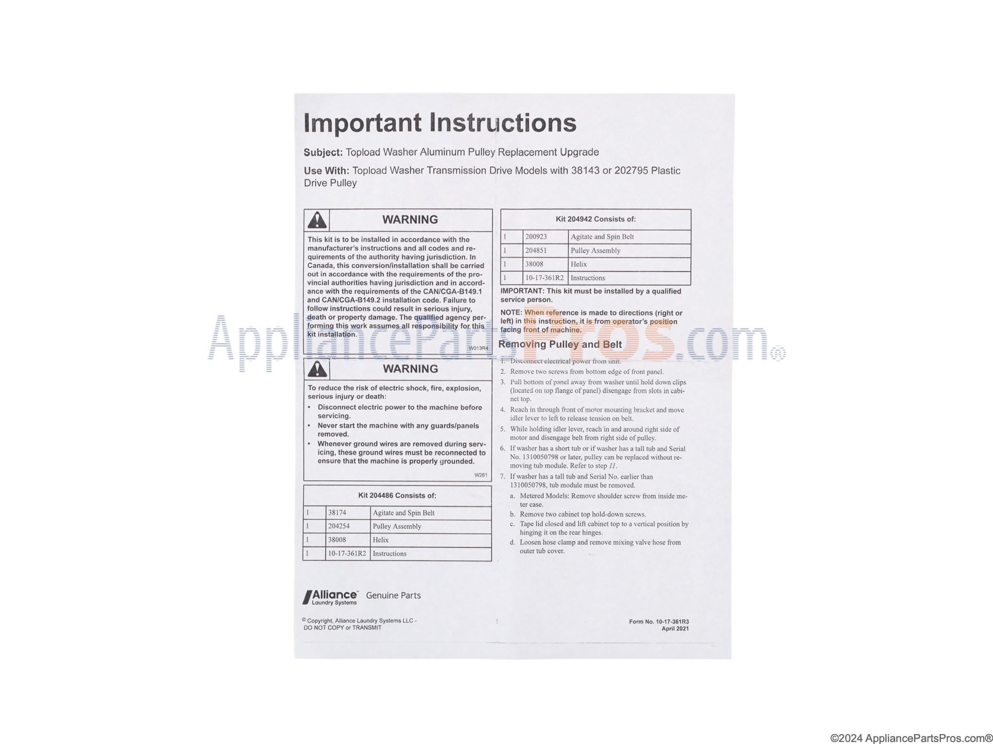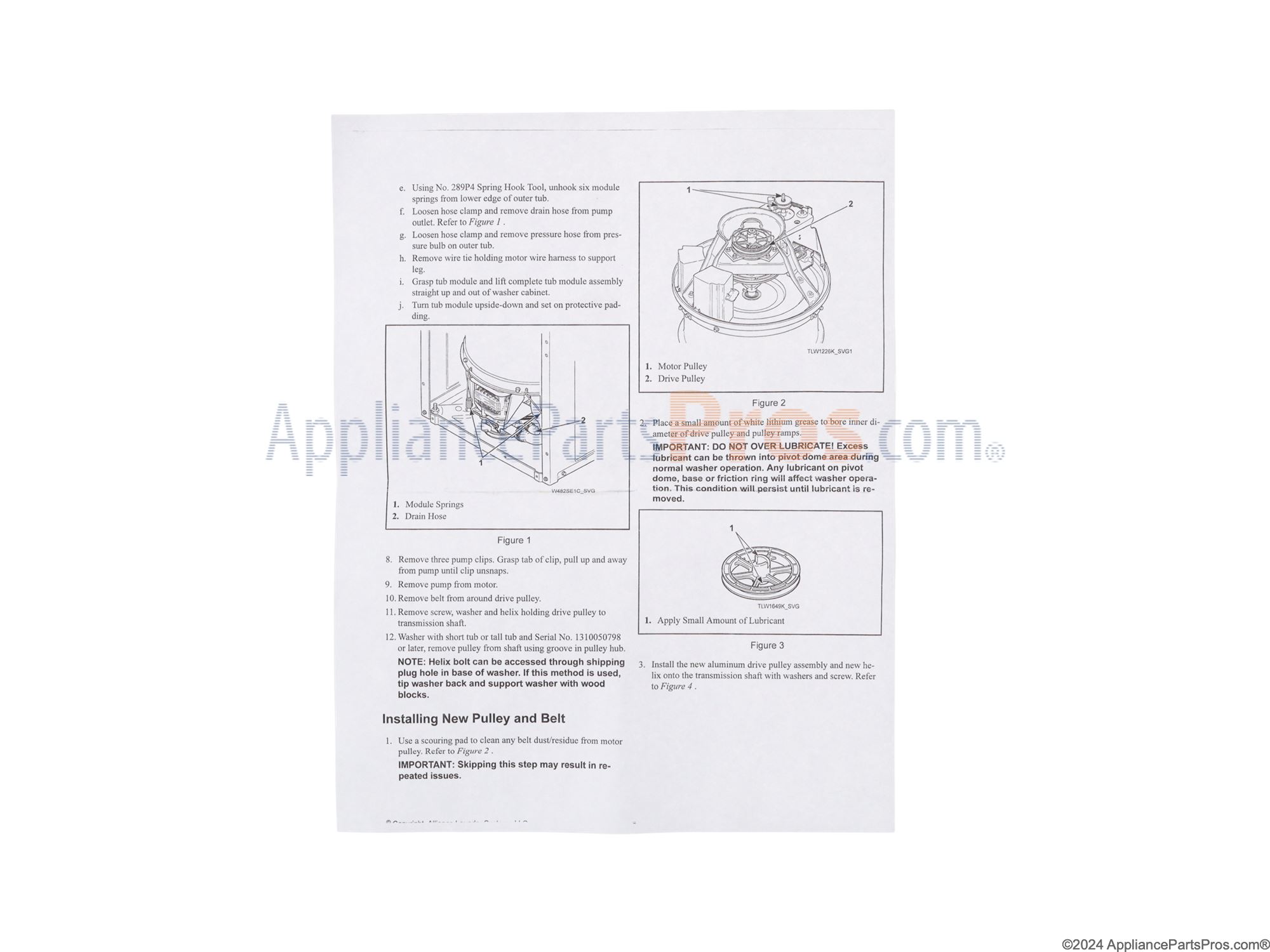 Kerry K Clyde , TX April 15, 2019 Appliance: Maytag Washer MVWB765FW0 Pulley stopped Removed center bolt. Remove two washers. Removed pulley. Installed new pulley and reversed procedures. Easy repair. Read More... 2 People found this story helpful Do-It-Yourself Rating: Repair Time Estimate: 15-30 minutes Tools: Pliers, Screwdrivers, Socket Set