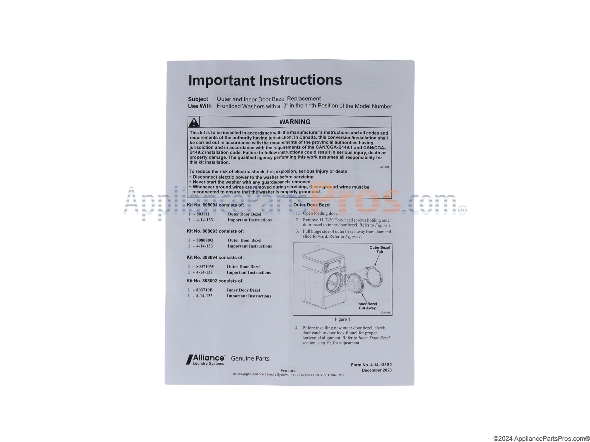 Speedqueen 808094 Kit Outer Door Bezel White OEM Part