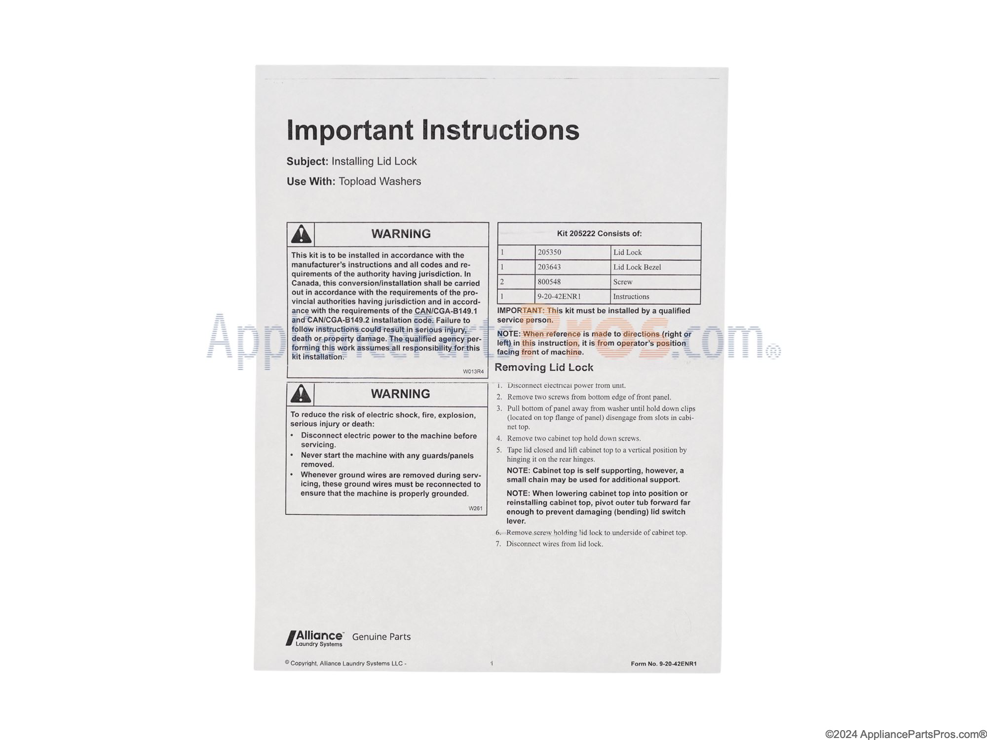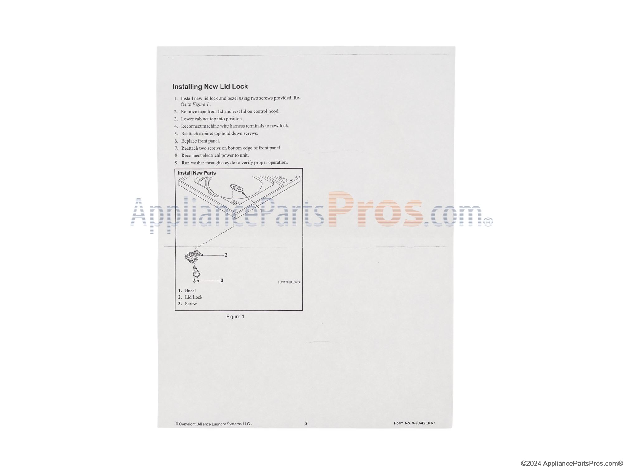The Lid Lock Kit is an OEM part for Speed Queen washing machines. It is made up of lid lock components and mounting hardware that allow the washer lid to securely lock into place during operation.