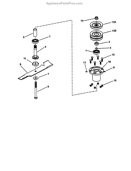 Parts for Snapper LT160H42DBV: Spindle - 48" Cutting Deck Parts