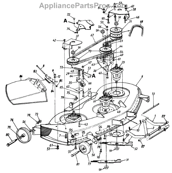 Parts for Yard Machines 14AS845H788 / 1997: Spindle, Deck Brake, And Chute Assembly Parts