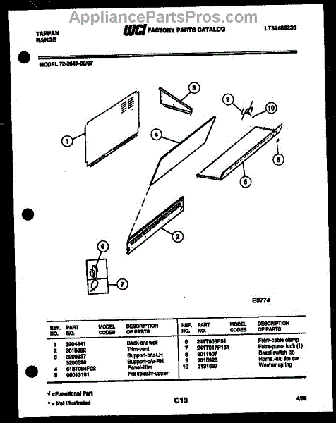Parts for Frigidaire 72-2547-23-07: 02 - Splasher Control Parts