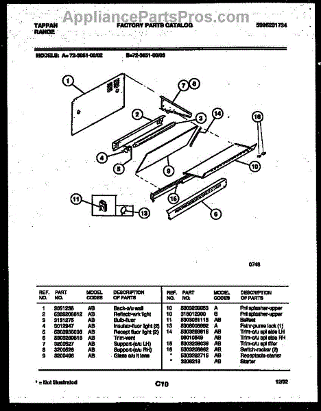 Parts for Frigidaire 72-3651-23-02: 02 - Splasher Control Parts