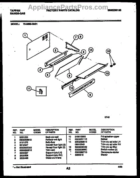 Parts for Frigidaire 72-3662-00-01: 02 - Splasher Control Parts