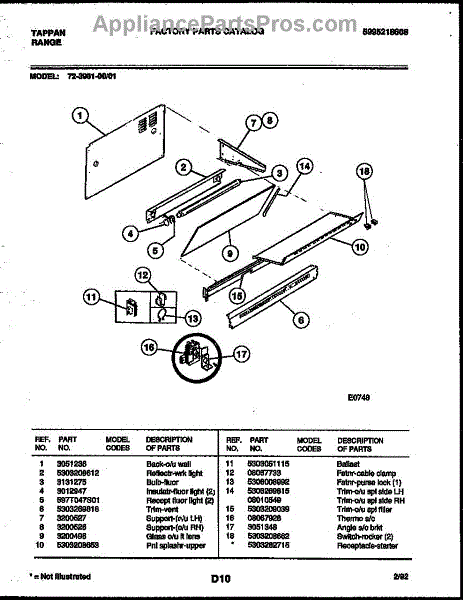 Parts for Frigidaire 72-3981-00-01: 02 - Splasher Control Parts