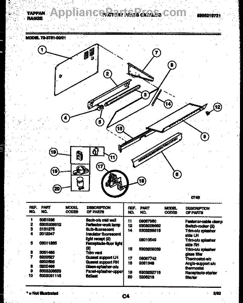 Parts for Frigidaire 73-3751-66-01: 03 - Splasher Control Parts