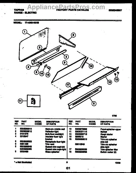 Parts for Frigidaire 77-4950-23-05: 07 - Splasher Control Parts