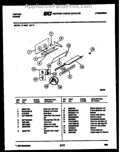 Parts for Frigidaire 77-4957-00-09: 11 - Splasher Control Parts