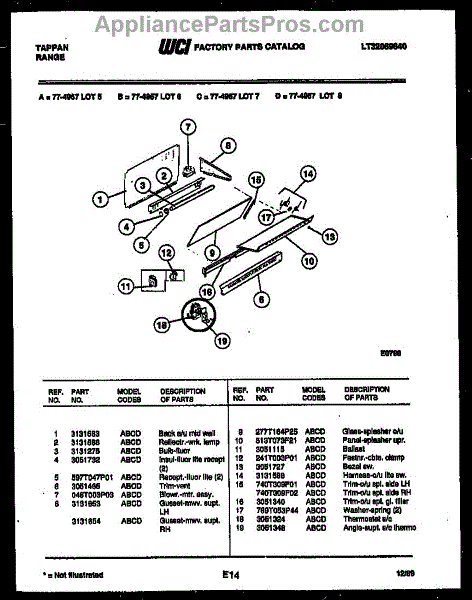 Parts for Frigidaire 77-4957-66-07: 11 - Splasher Control Parts