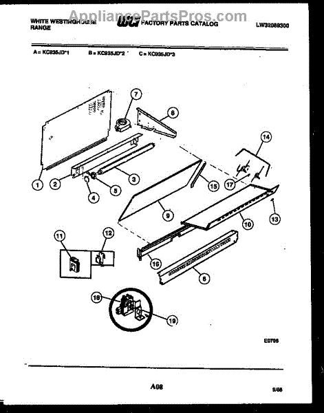 Parts for Frigidaire KC935JW3: 07 - Splasher Control Parts