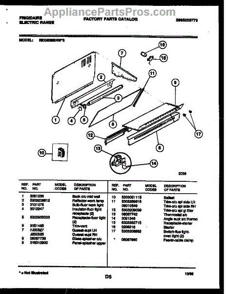 Parts for Frigidaire REG638BNW3: 03 - Splasher Control Parts