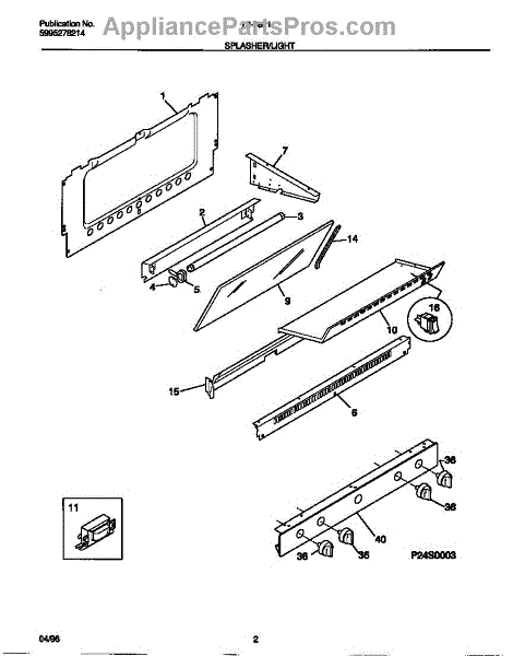 Parts for Frigidaire 72-3651-00-08: 02 - Splasher / Light Parts