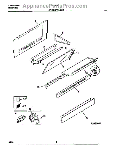 Parts for Frigidaire 73-3951-23-04: 02 - Splasher / Light Parts