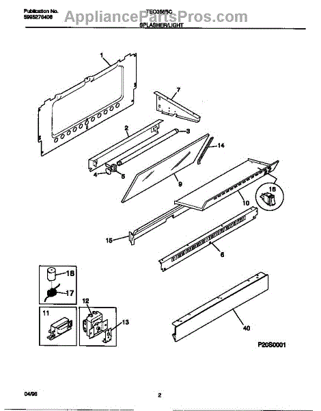 Parts for Frigidaire TEO356BCWA: 02 - Splasher / Light Parts