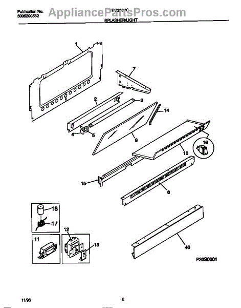 Parts for Frigidaire TEO356BCWD: 02 - Splasher / Light Parts