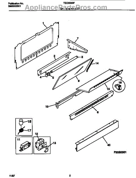 Parts for Frigidaire TEO356BFD1: 02 - Splasher-Light Parts