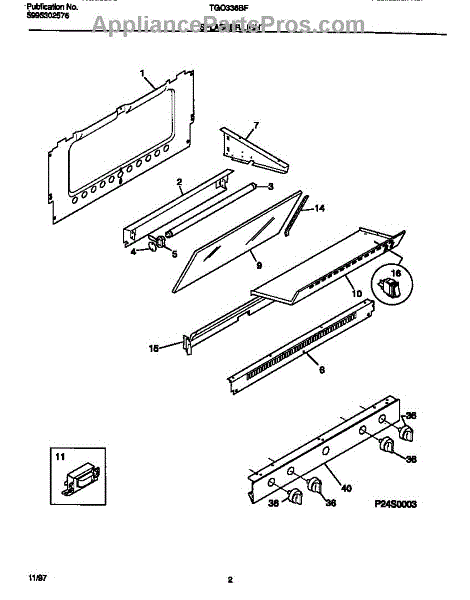 Parts for Frigidaire TGO336BFD1: 02 - Splasher / Light Parts