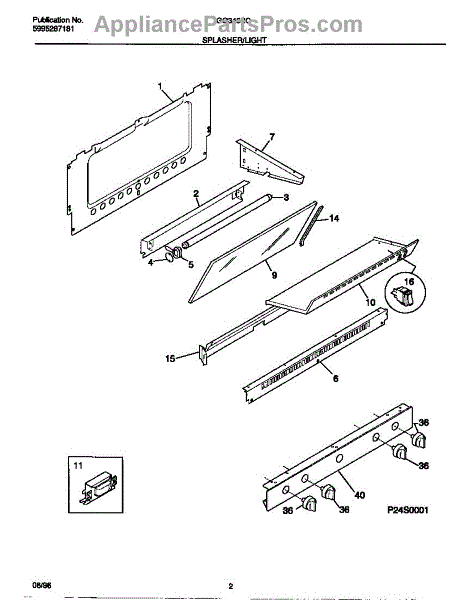 Parts for Frigidaire TGO346BCDC: 02 - Splasher / Light Parts