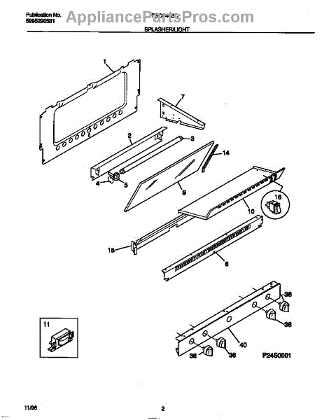 Parts for Frigidaire TGO346BCWD: 02 - Splasher / Light Parts