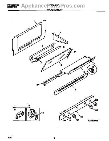 Parts for Frigidaire TGO356BFDA: 02 - Splasher / Light Parts