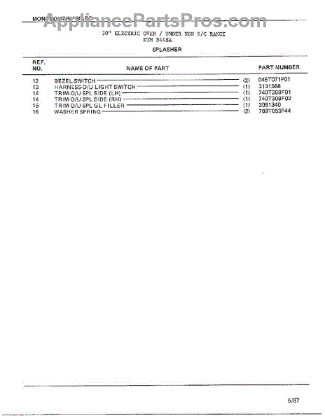 Parts for Frigidaire 8448A: Splasher Page 2 Parts