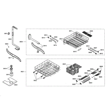 The Lower Dishrack Assembly is an OEM part for Bosch dishwashers. This assembly holds the dishes, utensils, and other items to be cleaned on the lower level of the dishwasher. It is designed to slide in and out smoothly, providing easy access for loading and unloading.