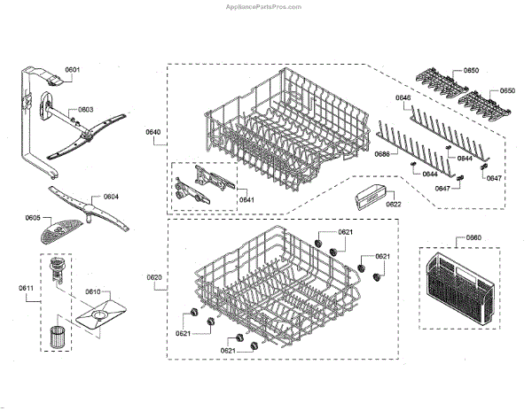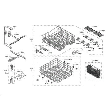 The Insert Dishwasher is an OEM part for Bosch dishwashers. It is a metal basket insert that mounts inside the lower rack of the dishwasher. This insert divides the lower rack into separate sections, allowing for more organization and better placement of dishes, cutlery, and other small items.