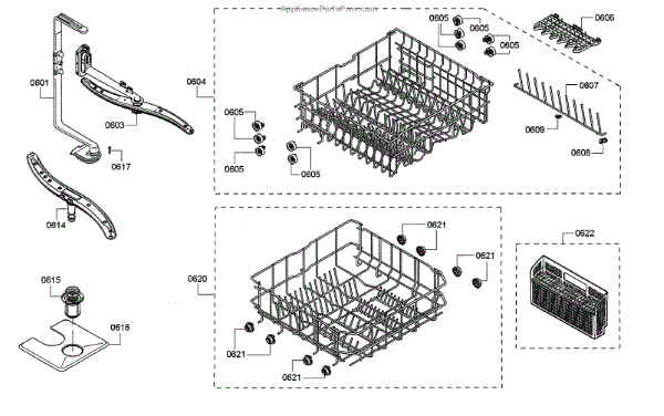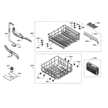 The Upper Dishrack Assembly is an OEM replacement part for Bosch dishwashers. Causes of a bad assembly include cracked or broken rack modules from years of abusive slamming during loading. Mineral buildup may also lead to jammed or stuck tines no longer gliding freely between positions. Symptoms of a bad Upper Dishrack include: