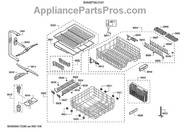 The Insert is an OEM component for Bosch dishwashers. It is an track piece designed to securely hold tall items in the lower rack. Made of plastic reinforced with ribs, the insert provides additional organizational support to accommodate larger kitchenware below without tipping or sliding. Causes of a bad insert can include cracks developing from repeated loading/unloading of rack contents or chunks missing from impact damage over time. Symptoms of a bad insert include: