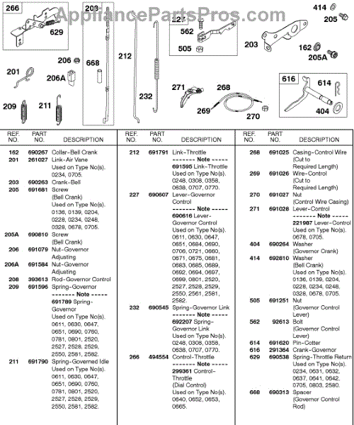 Parts for Briggs & Stratton 326431-0326-99: Springs, Controls Parts