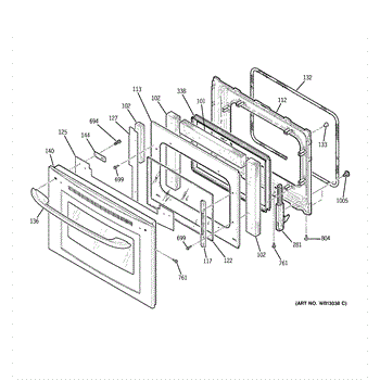 Door retainer kit secures the oven door glass panels in place. Replace if retainers are cracked, broken, or missing to restore proper door assembly.
